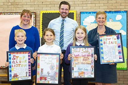 The students, who were invited to create eye-catching posters to promote road safety for both drivers and pedestrians, received their prizes at a special assembly. Promoting road safety awareness, winning and highly commended posters are now on display at the site.